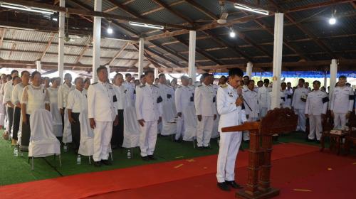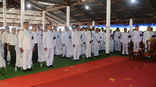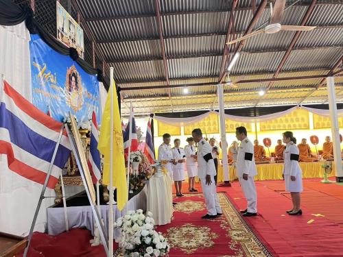 ประธานในพิธีและผู้เข้าร่วมร่วมร้องเพลงสรรเสริญพระบารมี และยืนสงบนิ่งเพื่อแสดงความอาลัย