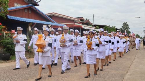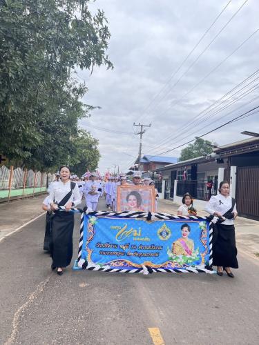 -เวลา 13.00 น. เริ่มกิจกรรมด้วยขบวนแห่เงินพระราชทานขวัญถุงกองทุนแม่ของแผ่นดิน พร้อมต้นเงิน (ผ้าป่า) จากวัดจันทร์ทุมมาวาสไปยังศาลาประชาคมบ้านบัวงาม โดยผู้ถือธง ป้าย และผู้อัญเชิญพระฉายาลักษณ์ได้ทำความเคารพตามพิธี